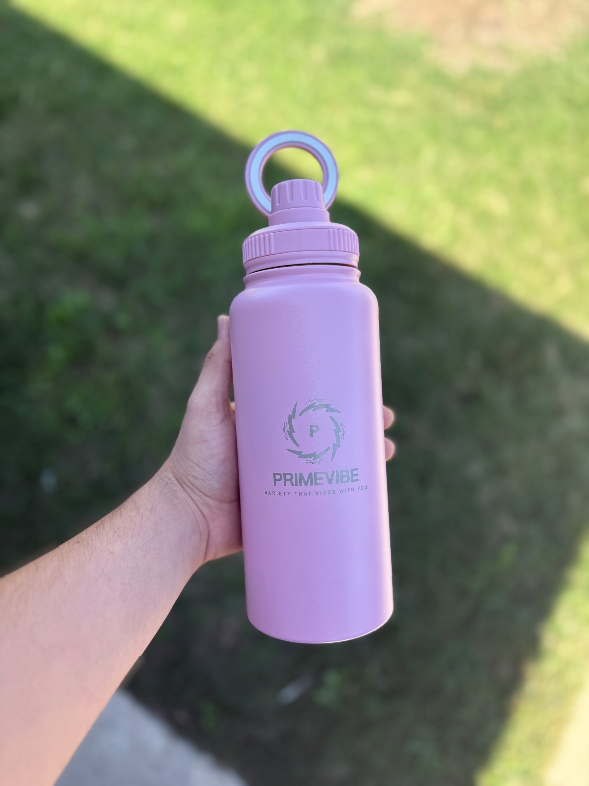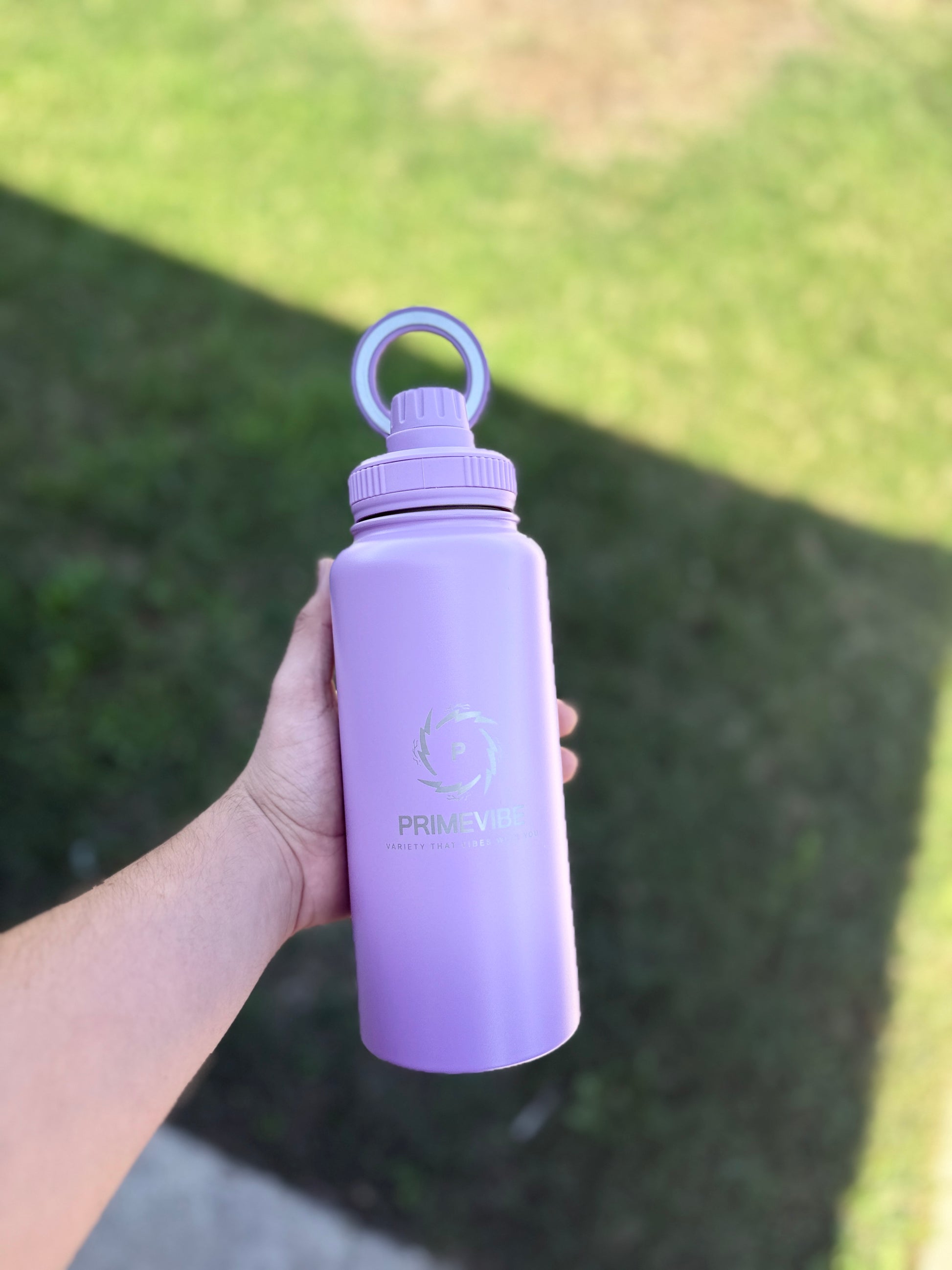 Stay hydrated and connected with the stylish PrimeVibe water bottle. This 32 oz (1 liter) bottle is crafted for everyday convenience and features a built-in magnetic holder that securely attaches your smartphone, keeping it within reach while you work out, travel, or relax. Made with a durable, insulated design to keep your drinks cold or hot, it combines functionality with a sleek, modern look in a vibrant lavender finish. Perfect for active lifestyles, it’s the ultimate fusion of hydration and tech-friendly design.
